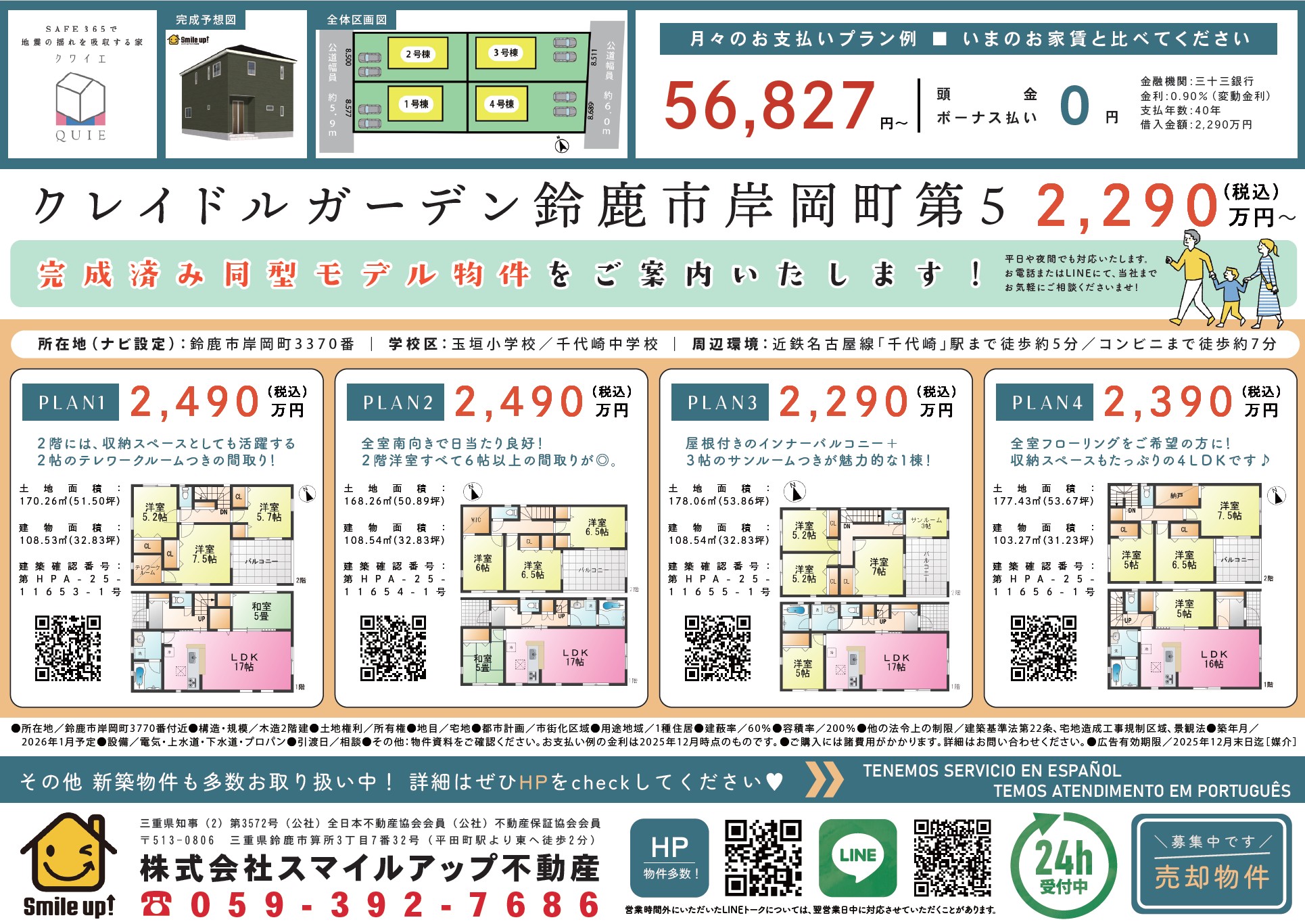【新規分譲/建築中】クレイドルガーデン鈴鹿市岸岡町第5